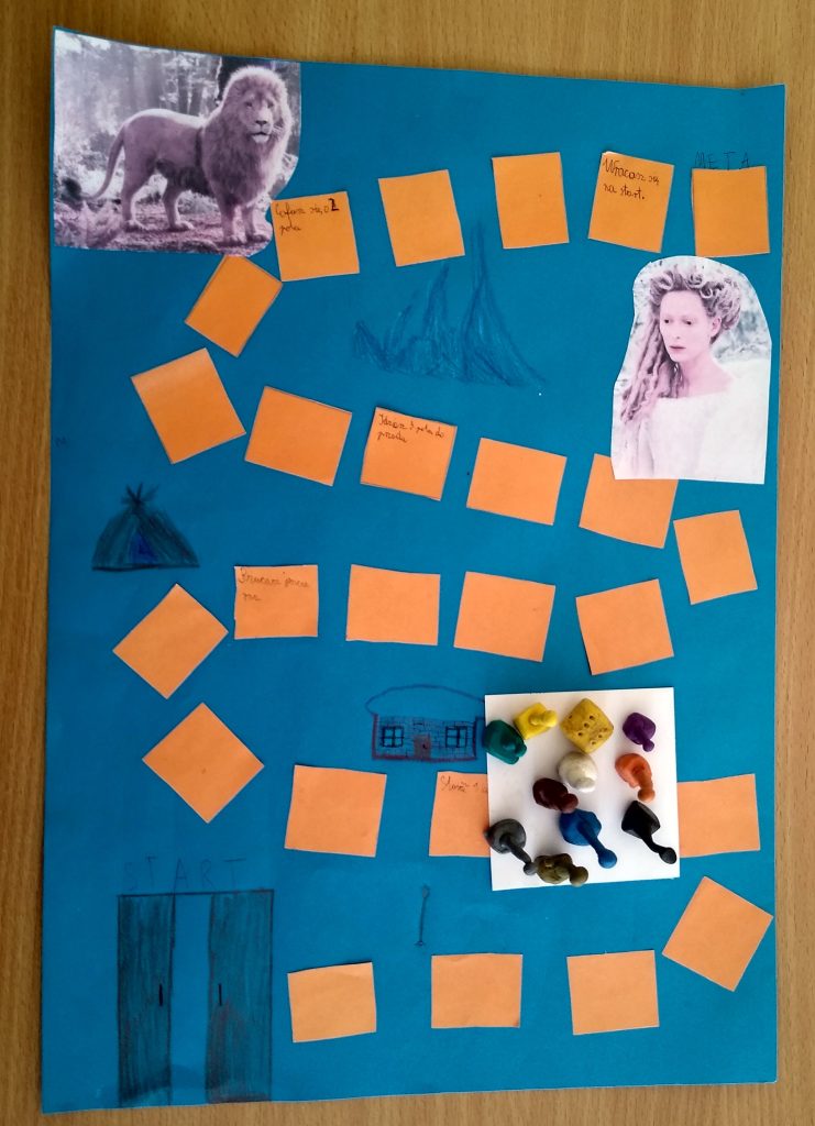 Czwartoklasiści po omówieniu lektury „Opowieści z Narnii. Lew, czarownica i stara szafa” wykonali zadania podsumowujące pracę z książką. Niektórzy przygotowali makiety przedstawiające to fantastyczne miejsce, inni skusili się na opracowanie gier planszowych opartych na tym tekście.