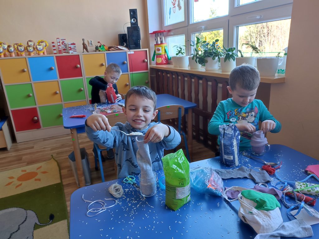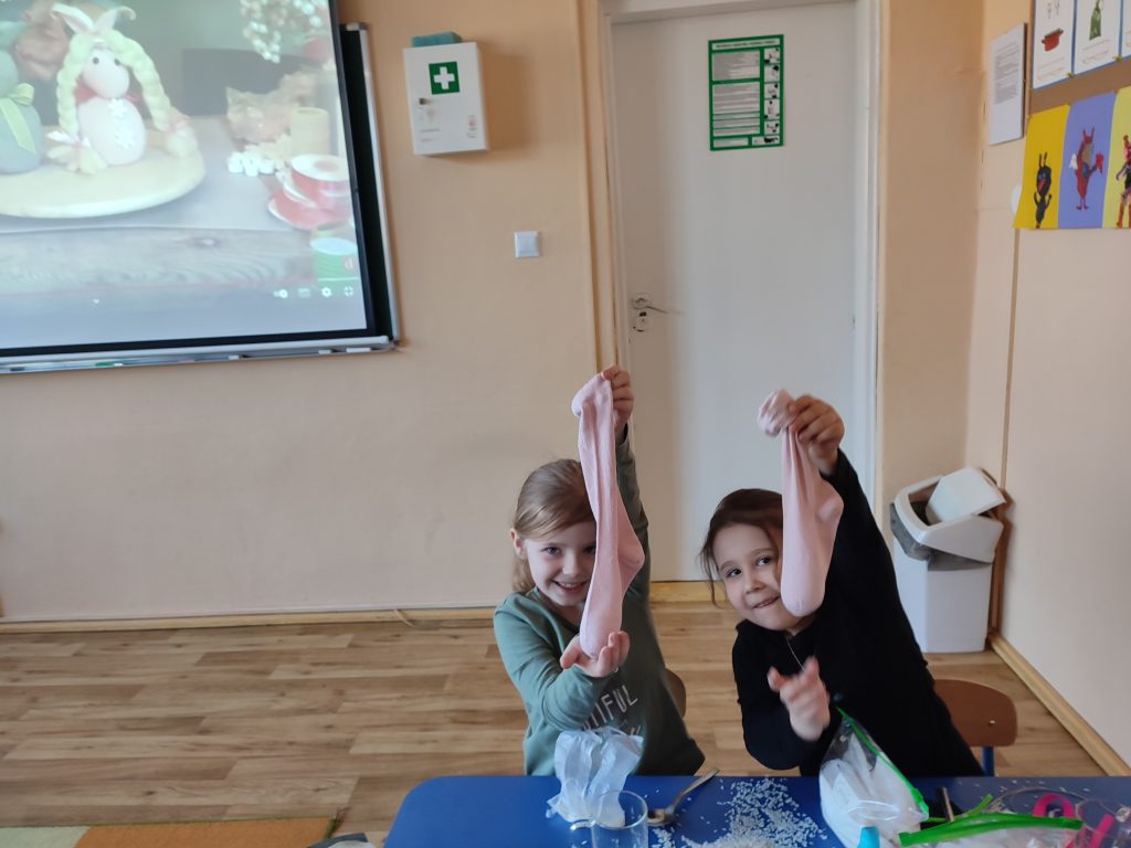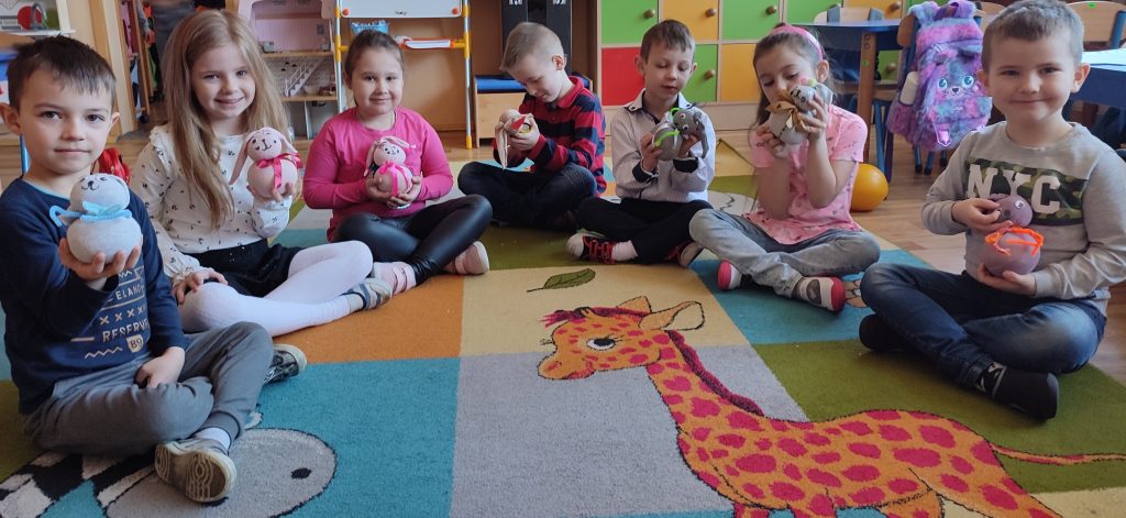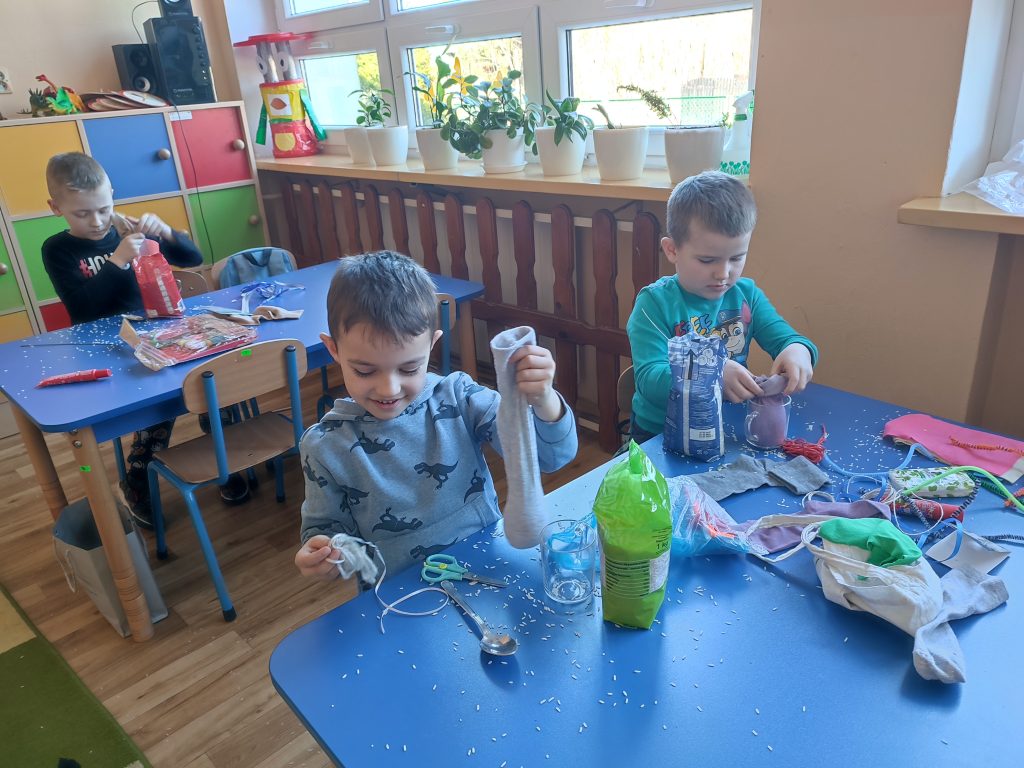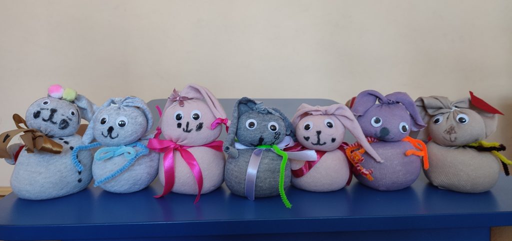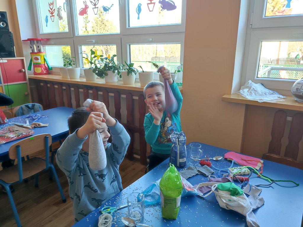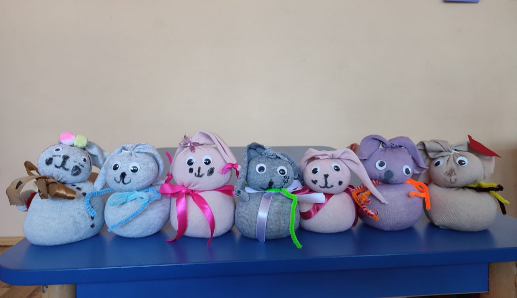 Aby rzeczy dłużej nam służyły, kupujmy te, które są dobrej jakości. Zachęcajmy do korzystania z rzeczy z drugiego obiegu oraz namawiajmy do przekazywania swoich nieużywanych już rzeczy dalej. Te zasady świetnie się sprawdzą nie tylko w przypadku odzieży. Jeśli mamy w domu niechciane ubrania, zwróćmy uwagę, że dobrym pomysłem jest nadanie im drugiego życia. Ich wyrzucenie traktujmy jako ostateczność.Dzieci uczęszczające do oddziału przedszkolnego wykonały zajączki ze starych skarpet. Projekt ten sprawił im to dużo frajdy i satysfakcji. Wyszły nam piękne ekozabawki.