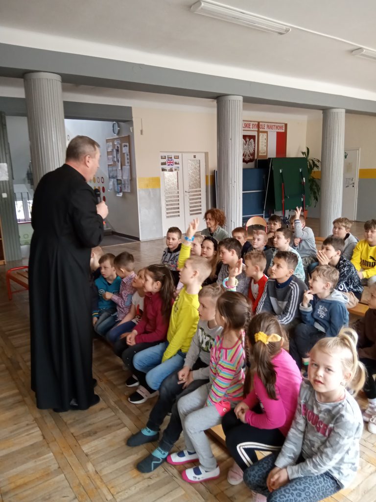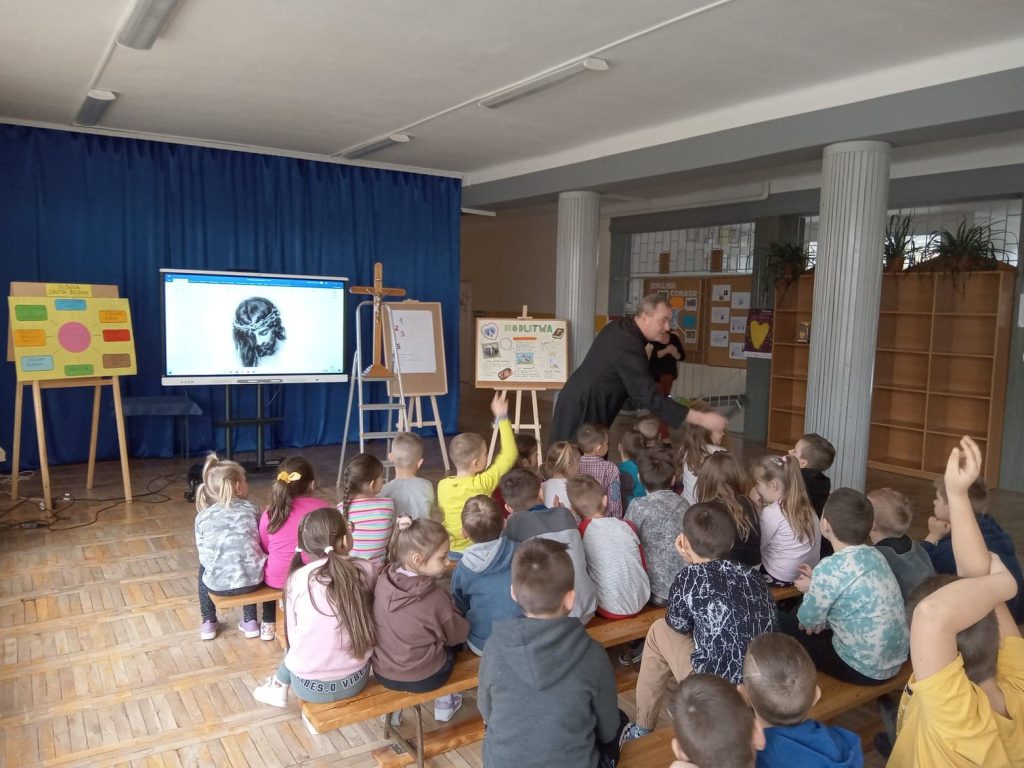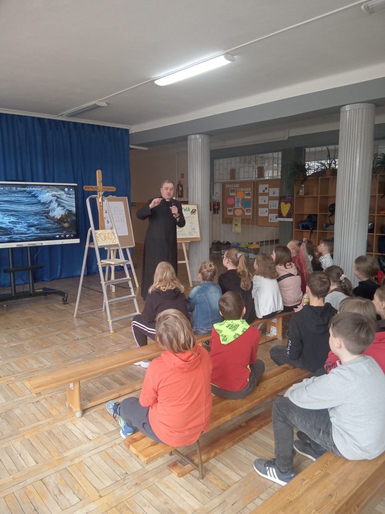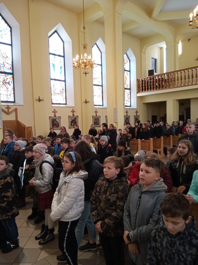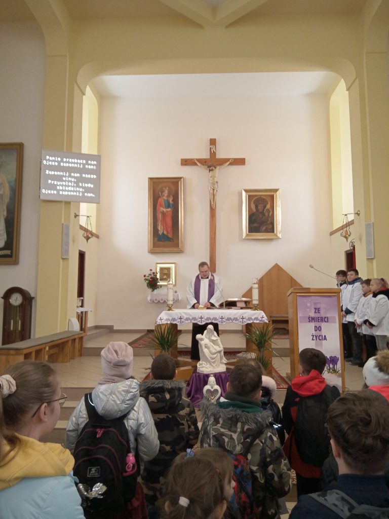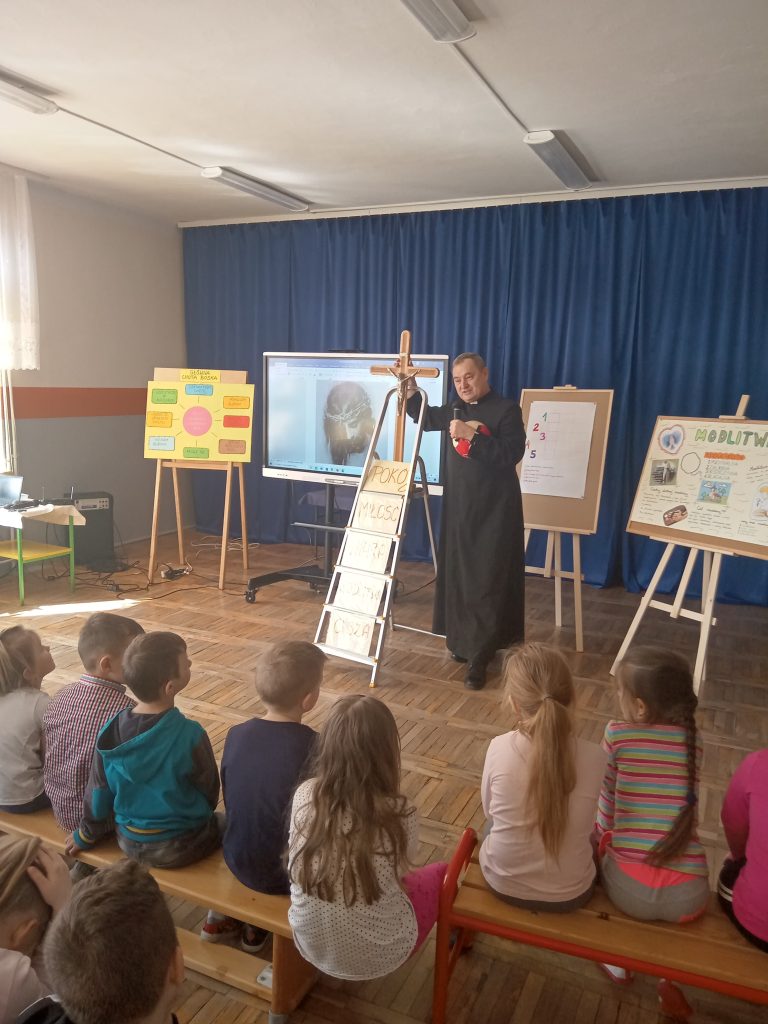 Uczniowie klas IV-VIII czynnie włączyli się w nauki rekolekcyjne, przygotowując ciekawe prezentacje multimedialne i plakaty przybliżające podejmowane tematy rekolekcyjne. Dzieci z oddziału przedszkolnego i klas I -III aktywnie uczyły się piosenki ,,Rysuję krzyż kropelką krwi”.