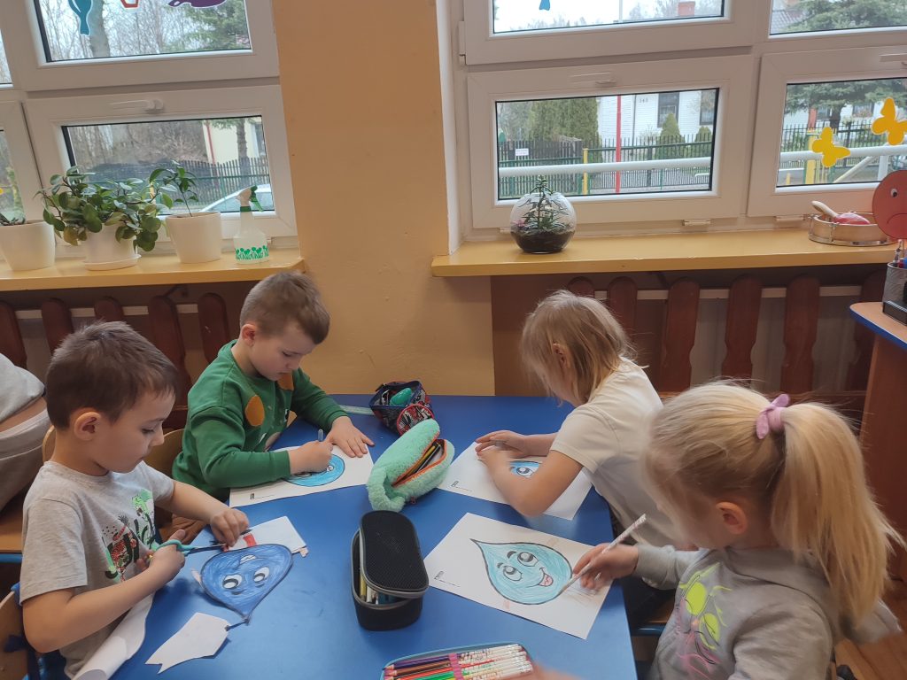 W ramach projektu dzieci uczęszczające do oddziału przedszkolnego podjęły się działania polegającego na oszczędzaniu wody. Nasze rozważania rozpoczęliśmy od teatrzyku „Wyprawa kropelki”, później poznaliśmy wodę w różnych stanach skupienia, obejrzeliśmy film edukacyjny pt. „Szanuj wodę, ratuj przyrodę!” i wykonaliśmy pracę plastyczną.