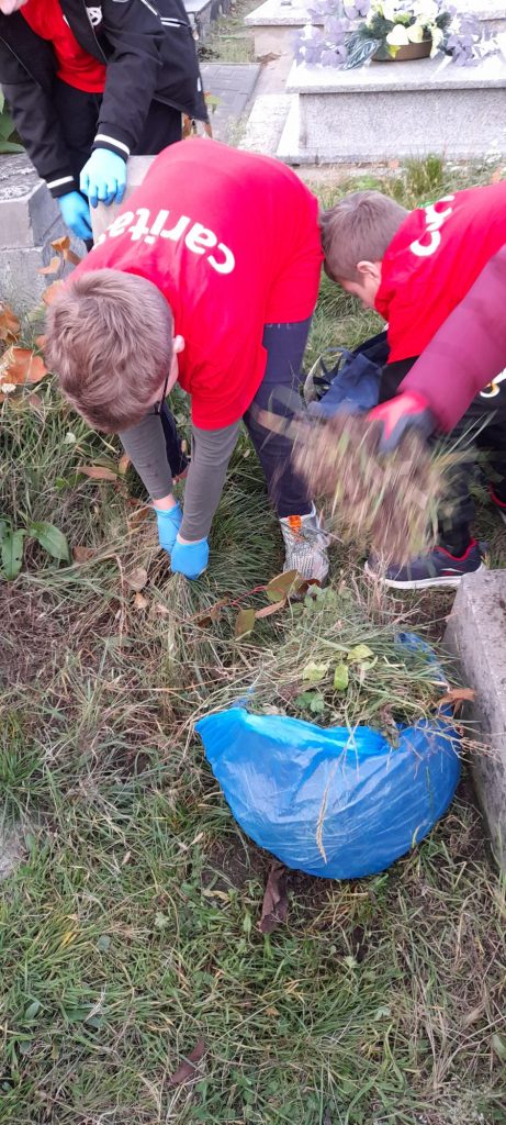 Szkolne Koło Caritas po raz kolejny zorganizowało akcję „Sprzątamy zaniedbane i puszczone groby”.