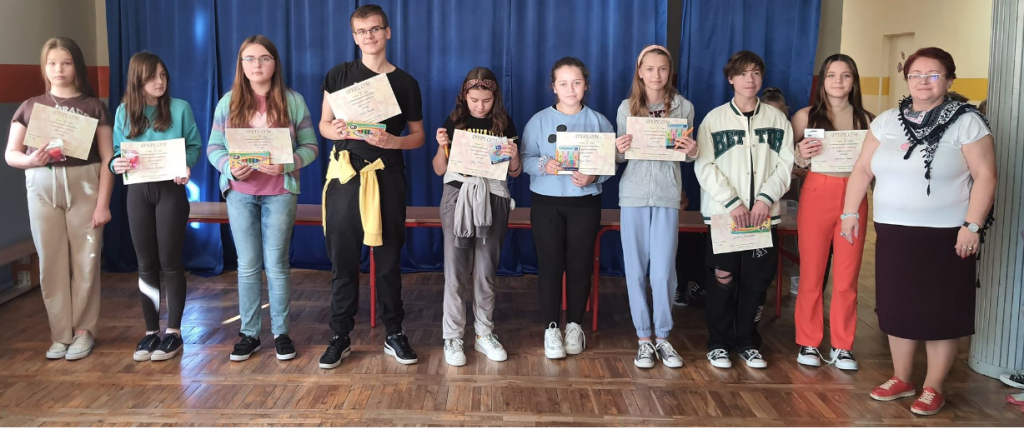 28 października 2022r. zwycięzcy konkursu na forum szkoły otrzymali dyplomy oraz nagrody rzeczowe ufundowane przez organizatora konkursu – panią Ninę Pytoń. Serdeczne gratulacje dla wszystkich zwycięzców i podziękowania dla wszystkich jego uczestników!