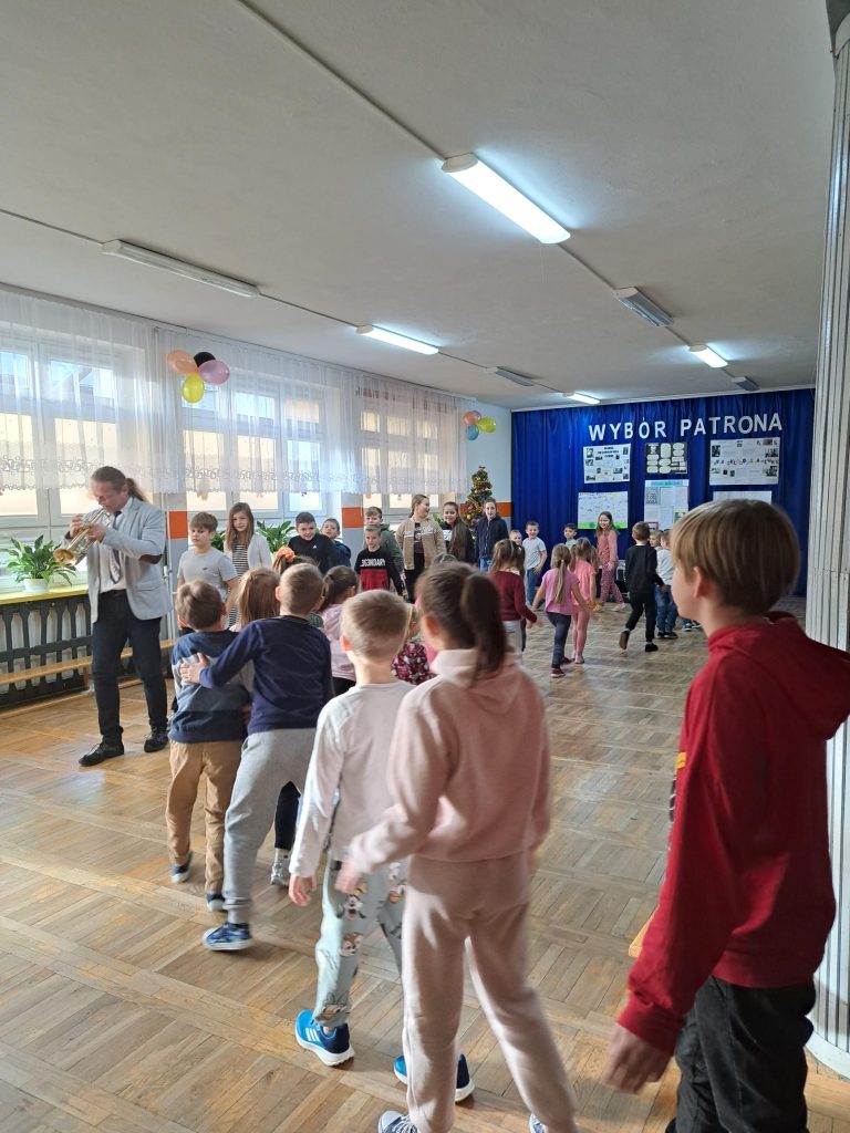 9 grudnia 2022 r. uczniowie naszej szkoły mogli uczestniczyć w świątecznym spotkaniu z wędrującą filharmonią. Motywem przewodnim tegorocznego spotkania był tytuł – „Przygody elfików – pomocników Mikołaja”. Uczniowie śpiewali i tańczyli