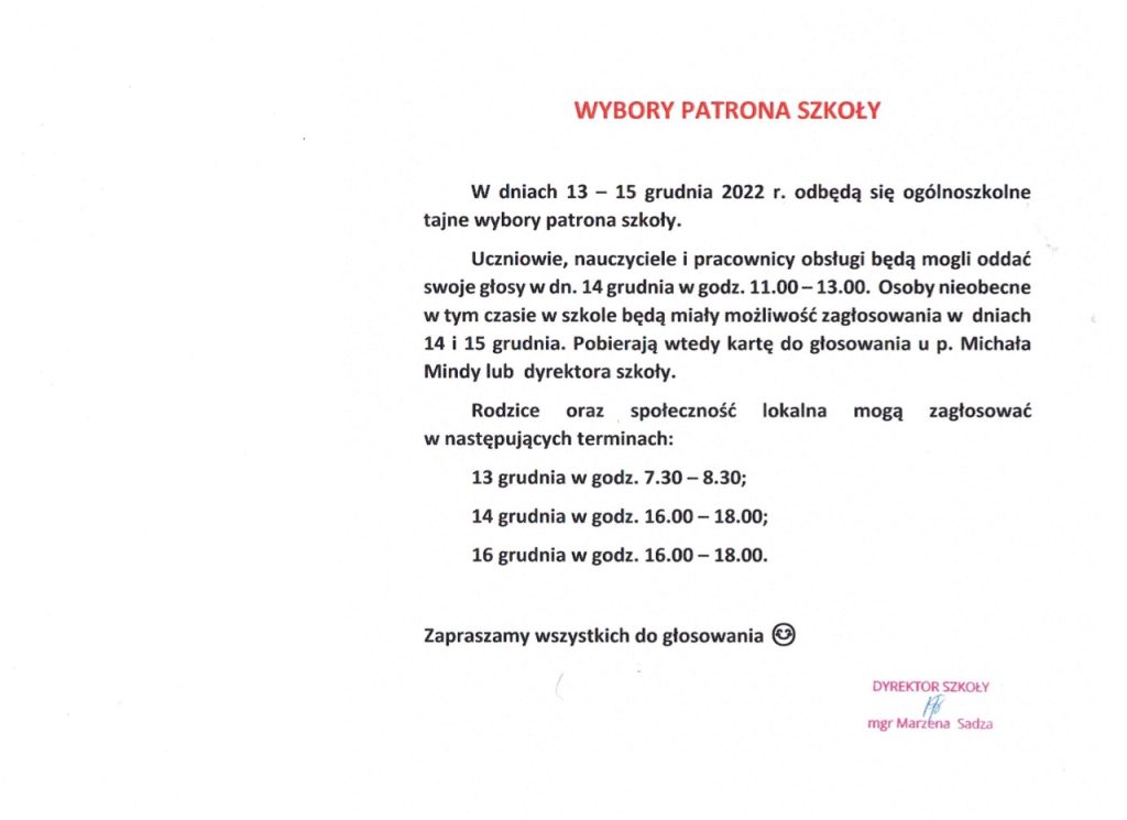 Ważne ogłoszenie p. Dyrektor: