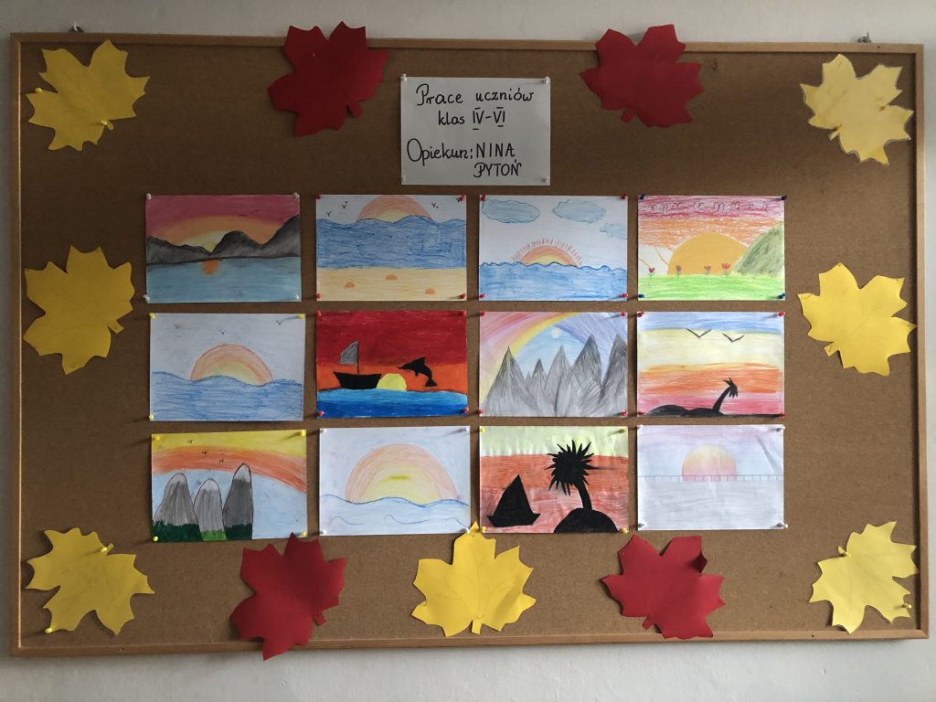 Szkoła stała się kolorowym tłem dla artystycznych dokonań naszych uczniów z klas IV-VI, którzy pod opieką Pani Niny Pytoń wyrazili swój talent i kreatywność. Centralnym punktem szkolnego korytarza jest teraz tablica ogłoszeń, na której dumnie prezentujemy kolekcję prac plastycznych nasyconych motywem jesieni.