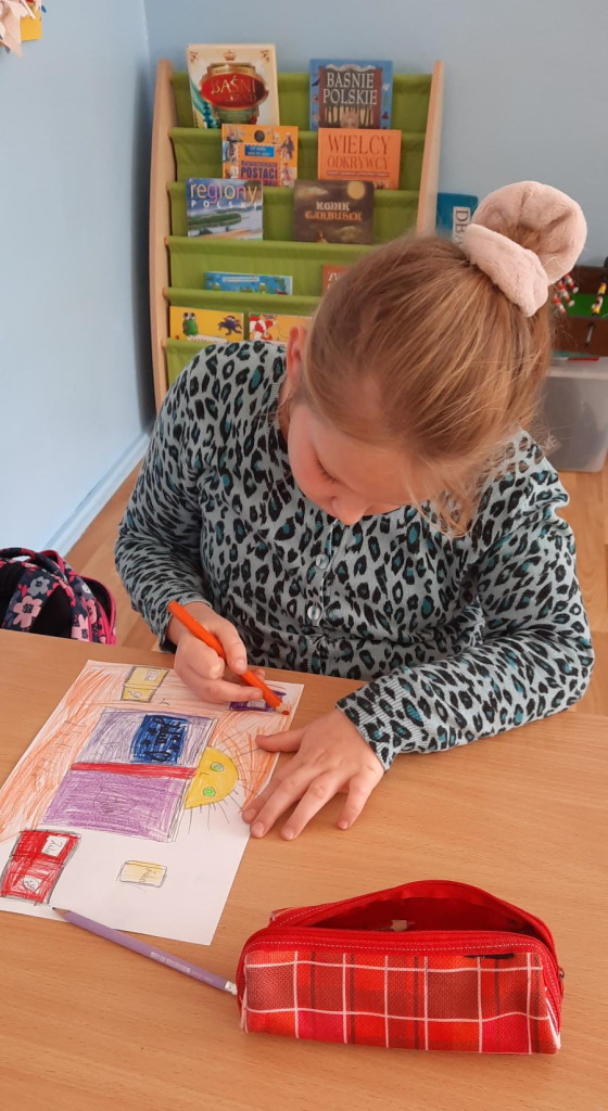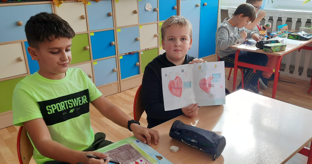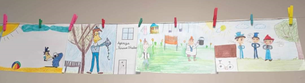 Na kartkach wykonały rysunki i opisy wydarzeń czytanych w lekturze. Uzupełniły również lekturniki i wykonały makietę fragmentu lektury.