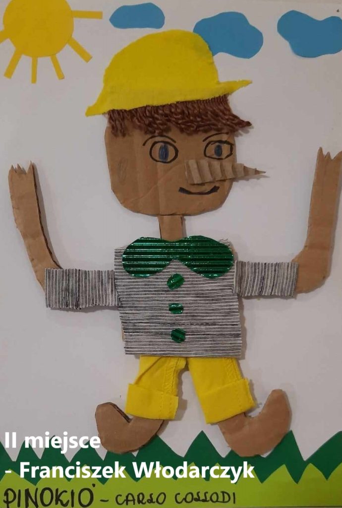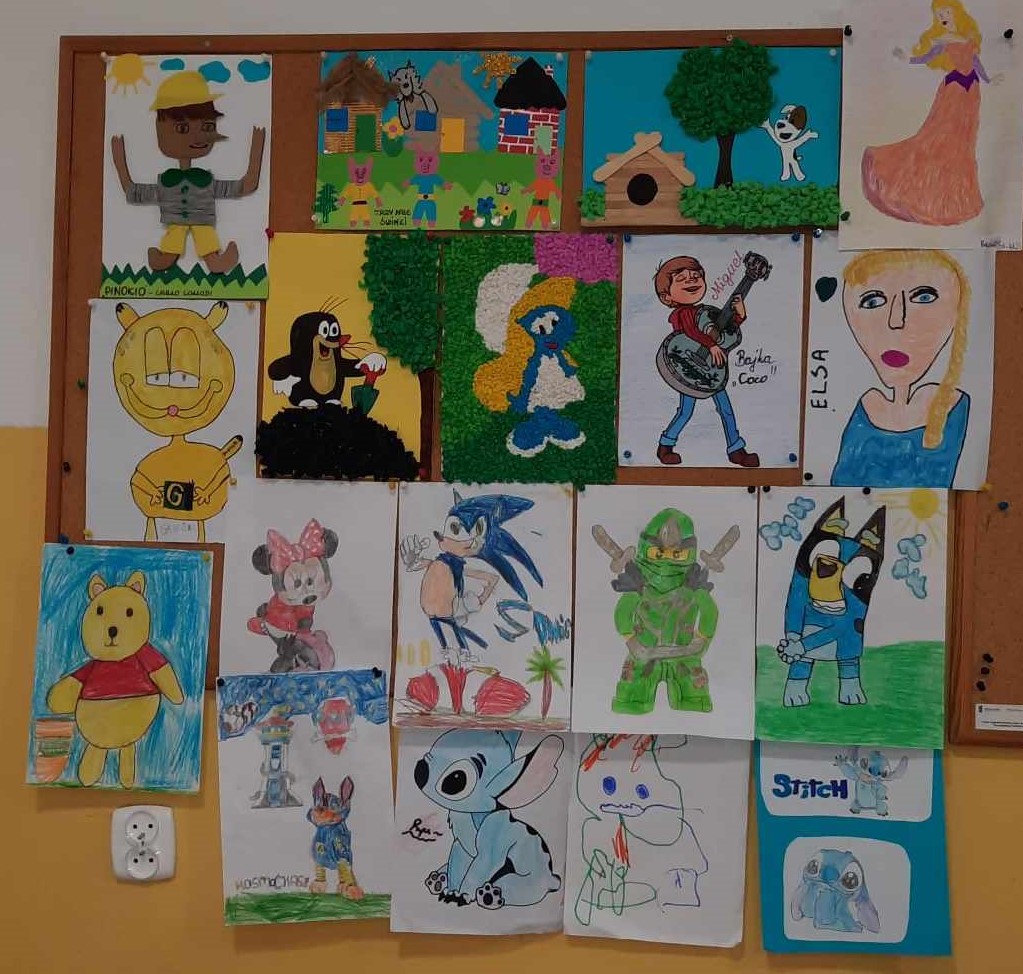 W listopadzie 2023 r. uczniowie naszej szkoły z klas 0-III oraz z oddziału przedszkolnego wzięli udział w konkursie plastycznym „MOJA ULUBIONA POSTAĆ Z BAJKI” z okazji obchodzonego 5 listopada Międzynarodowego Dnia Postaci z Bajek.