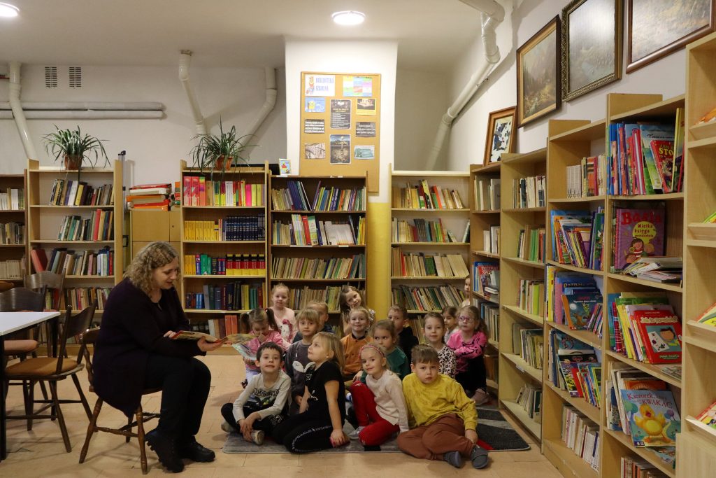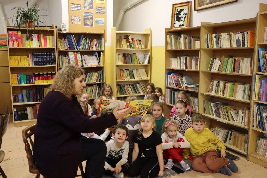 Pani bibliotekarka zaprosiła uczniów w magiczny świat czytelnika. Najmłodsi, poznali zasady funkcjonowania tego szczególnego miejsca poprzez wysłuchanie czytanej przez nią bajki z serii Przygody Fenka – Biblioteka.
