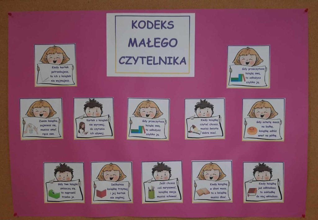 Dowiedzieli się również, co zrobić, aby stać się czytelnikiem biblioteki oraz jak należy obchodzić się z książkami. Efektem było wspólnie wypracowany Kodeks Młodego Czytelnika oraz założenie kart czytelników.