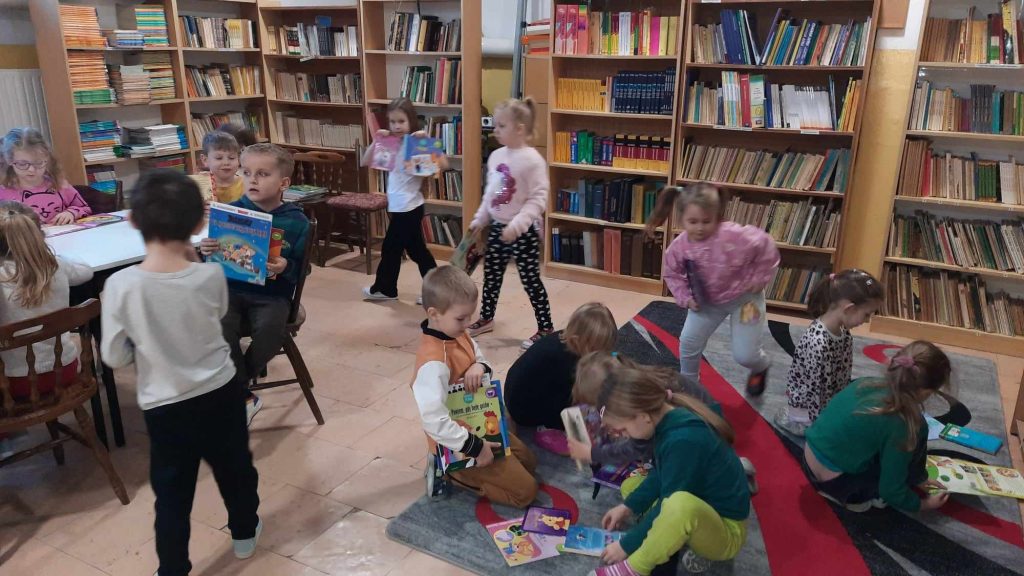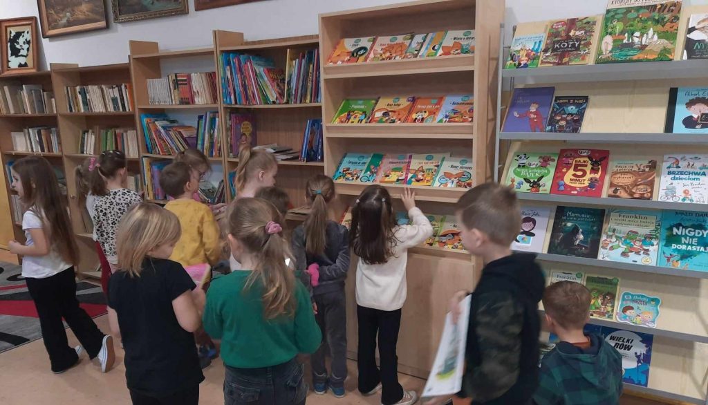 Nasi mali goście z wielkim zainteresowaniem przeglądali biblioteczne regały, wypełnione ciekawymi książkami, zgłaszając jednocześnie chęć ich wypożyczenia. Wśród wypożyczających najmłodszych czytelników naszej biblioteki dużym zainteresowaniem cieszyły się zwłaszcza nowości książkowe zakupione dla nich w ramach Narodowego Programu Czytelnictwa.