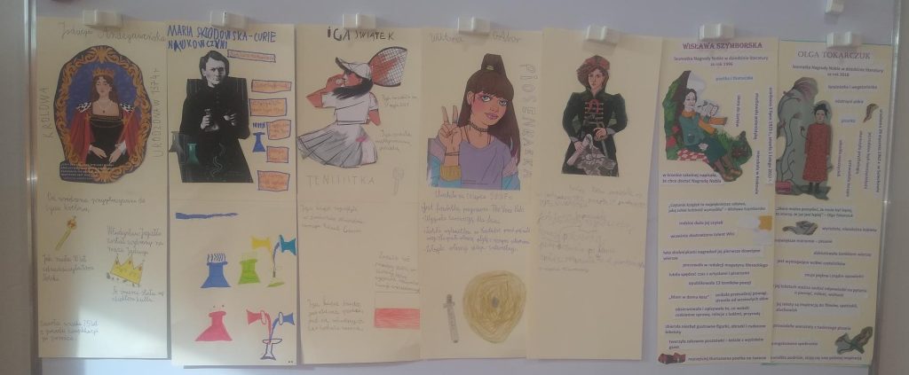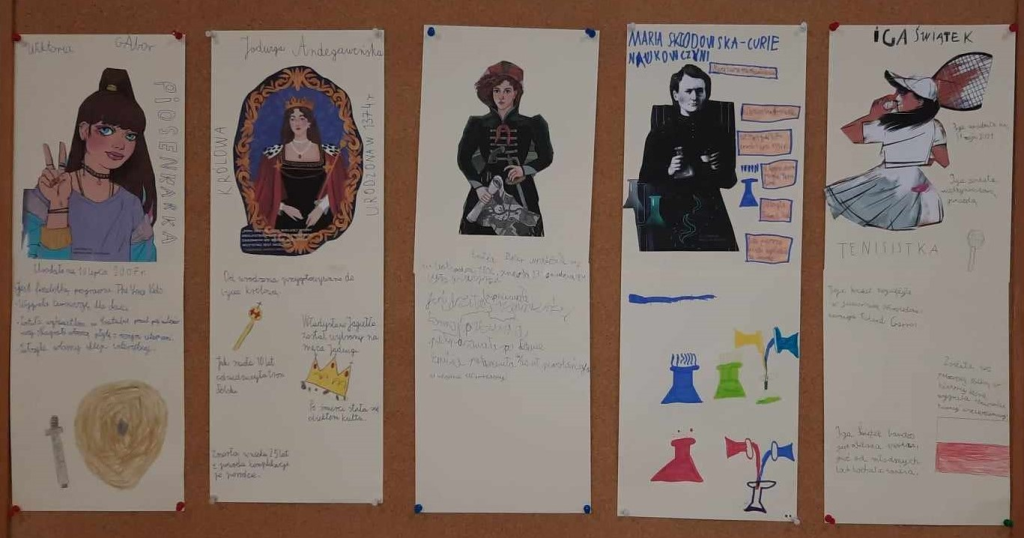 Uczniowie klasy IV również postanowili uczcić „Święto Kobiet” przygotowując plakaty i przedstawiając sylwetki kilku wybranych, znanych, niekonwencjonalnych kobiet i ich osiągnięć, które związane są ze światem artystycznym, nauki, historii oraz sportu.