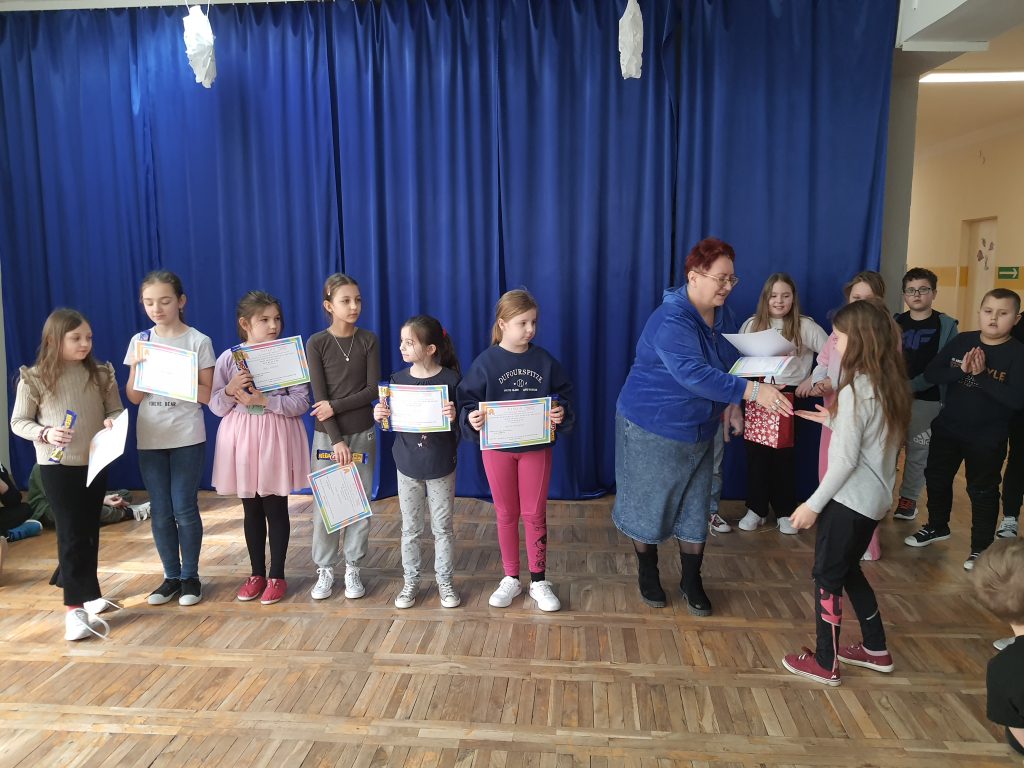 10 uczestników konkursu na forum szkoły otrzymało dyplomy oraz słodycze ufundowane przez organizatora konkursu – Ninę Pytoń.