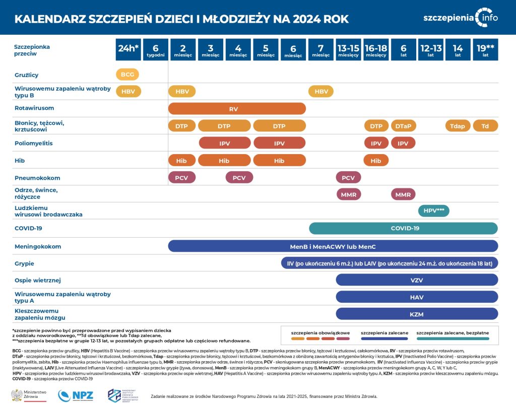 Główny Inspektorat Sanitarny opracowuje każdego roku Program Szczepień Ochronnych, potocznie nazywany Kalendarzem Szczepień. Zawiera on wykaz obowiązkowych i zalecanych szczepień oraz terminy ich przeprowadzenia.