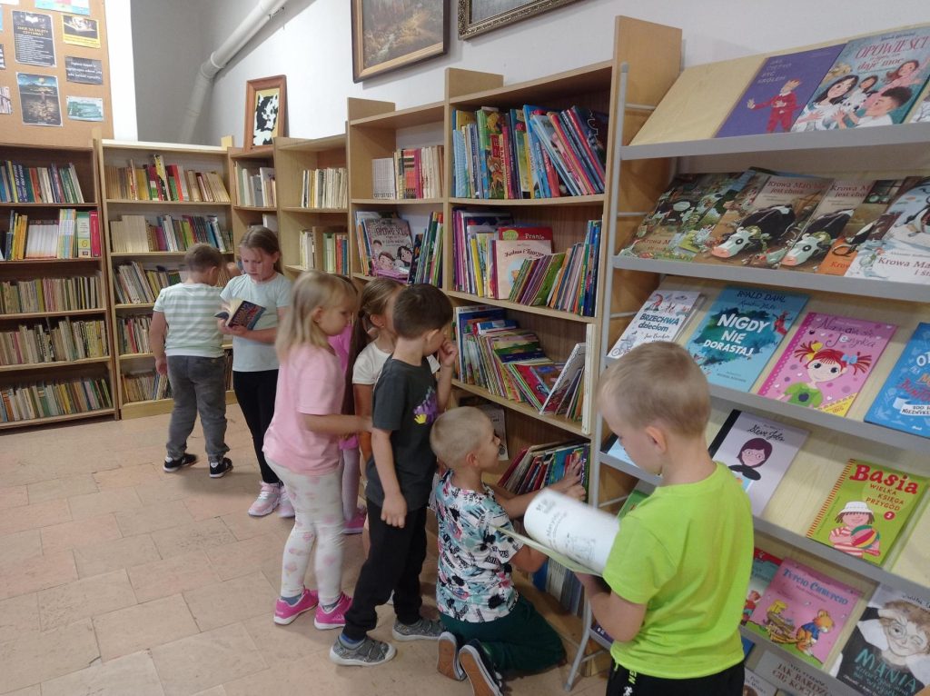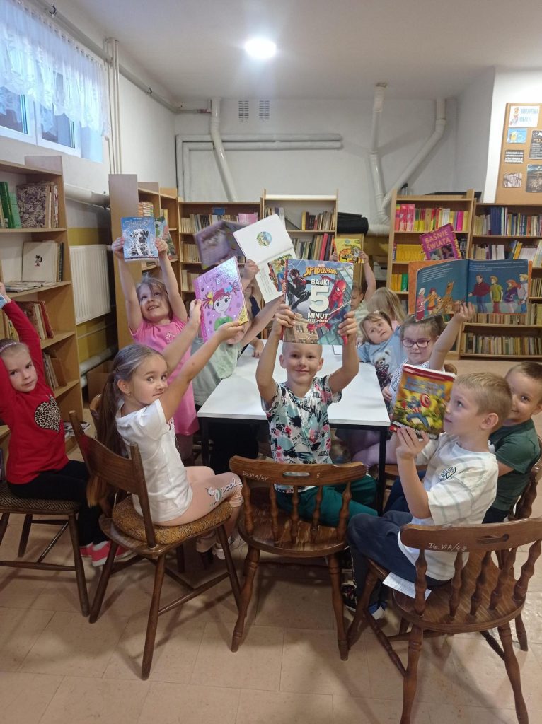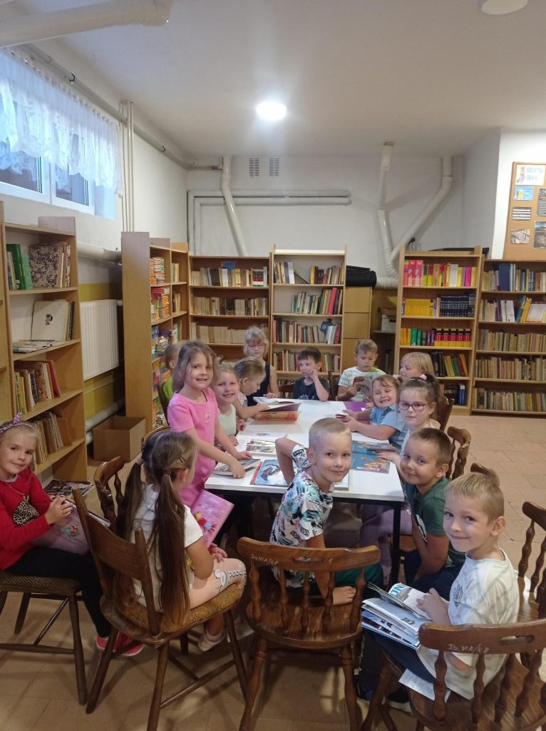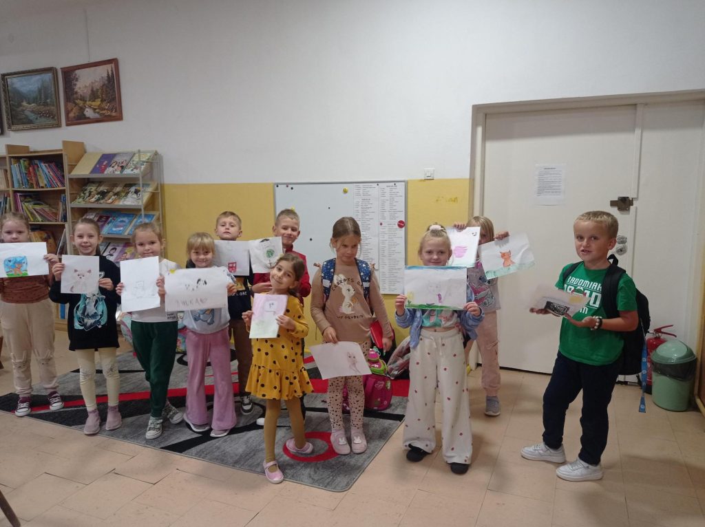 W ramach Międzynarodowego Miesiąca Bibliotek Szkolnych do naszej biblioteki z pierwszą wizytą w tym roku szkolnym przyszły przedszkolaki z oddziału przedszkolnego i uczniowie klasy pierwszej. Dzieci miały okazję zobaczyć jak wygląda praca bibliotekarza jak również mogły wypożyczyć swoje pierwsze książki. Po zapoznaniu się z księgozbiorem biblioteki uczniowie wykonali ilustrację do swojej ulubionej książki.