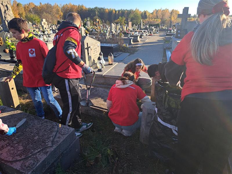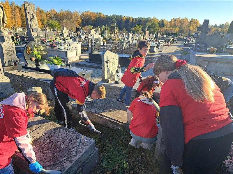 Wolontariusze wyposażeni w grabki, łopatki , szczotki, szmatki i wiadra z wodą wykazali się dużym zaangażowaniem w sprzątanie wiekowych, opuszczonych mogił. Niektóre z nich pochodziły z 1862 roku. Uczniowie uprzątnęli z nagrobków gałęzie i jesienne liście. Usunęli stare, wypalone znicze,