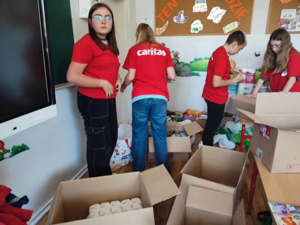 W dniach 16.09.2024 – 20.09.2024 r. Szkolne Koło Caritas zaangażowało się w ogólnopolską akcję Pomóżmy Powodzianom: Razem Można Więcej! Wolontariusze, uczniowie, rodzice i nauczyciele naszej szkoły aktywnie zaangażowali się w te akcję przynosząc środki chemiczne i artykuły żywnościowe o długim terminie przydatności. Zebrano ok. 150 kg. produktów, które przekazano do Caritas Diecezji Radomskiej.