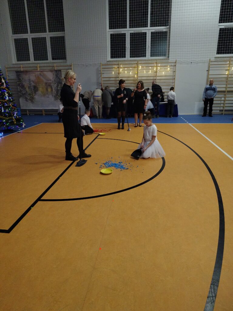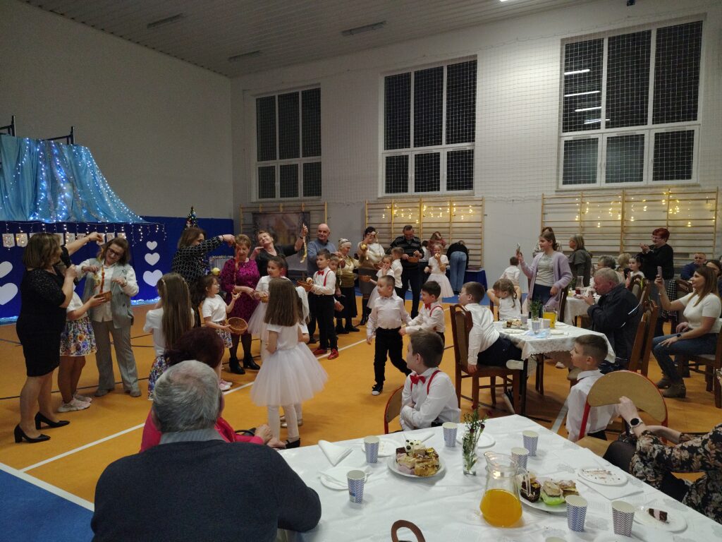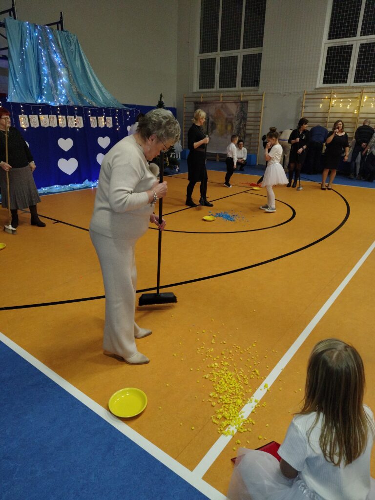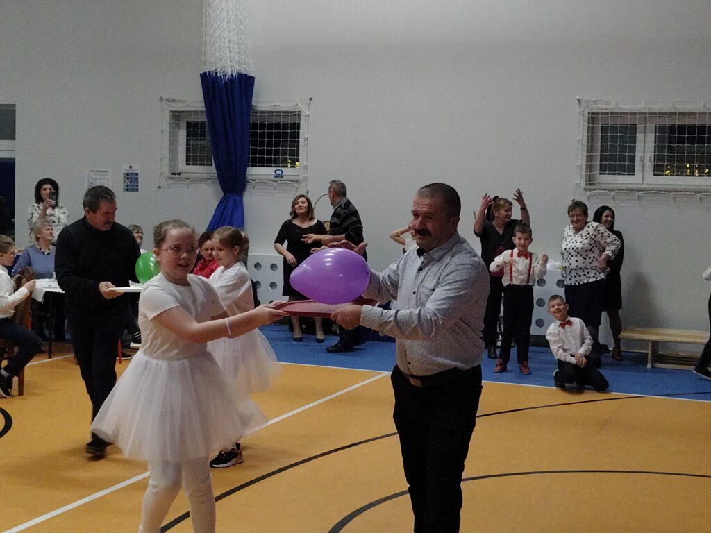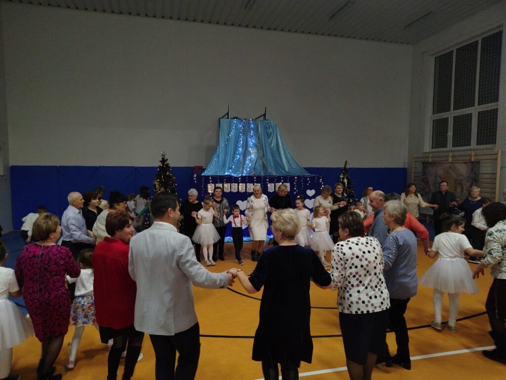 Po występie uczniowie wręczyli babciom i dziadkom własnoręcznie przygotowane prezenty. Po życzeniach złożonych przez p. dyrektor Marzenę Sadzę, przeszedł czas na wspólną zabawę, konkurencje cieszyły się dużym zainteresowaniem, a wszyscy uczestnicy zostali nagrodzeni słodkościami. Na koniec wszyscy zostali zaproszeni na parkiet, gdzie przy dźwiękach tanecznej muzyki bawiły się i wnuczęta, i dziadkowie.