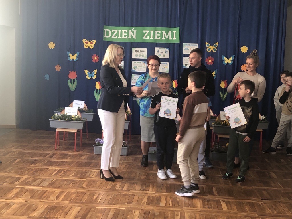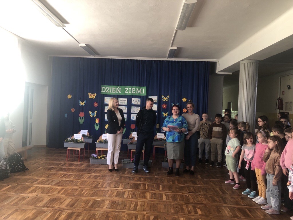 Z tej okazji została przygotowana gazetka tematyczna na tle wiosennej dekoracji, natomiast dzieci z oddziału przedszkolnego i uczniowie klas I-VIII pod opieką swoich wychowawców wzięli udział w szkolnej akcji sadzenia kwiatów doniczkowych. W tym celu została przygotowana wystawa zasadzonych w doniczkach pięknych kwiatów, które ozdobiły szkolny hol. Za włożony wysiłek w udekorowanie szkolnego otoczenia organizatorzy wręczyli jego uczestnikom dyplomy i ordery klasowe za bycie przyjacielem przyrody. Order przyjaciela przyrody otrzymała również pani Dyrektor Marzena Sadza za pomoc w organizacji tego przedsięwzięcia.Serdecznie wszystkim dziękujemy za duże zaangażowanie w szkolną akcję.