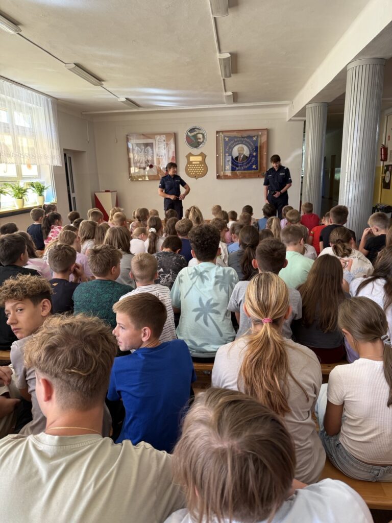 W dniu 22 września 2025r. w PSP im. Janusza Korczaka w Gąsawach Rządowych odbyła się pogadanka funkcjonariuszek z Komendy Powiatowej Policji w Szydłowcu z uczniami na temat zachowania bezpieczeństwa w drodze do i ze szkoły, zasadach przechodzenia przez jezdnię, konieczności noszenia kasku na głowie oraz zasadach korzystania z hulajnogi elektrycznej.
