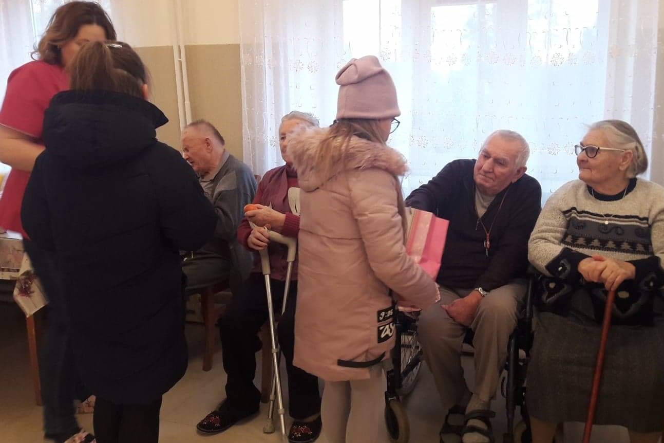 Niedawno obchodziliśmy Dzień Babci i Dziadka. Tradycyjnie delegacja uczniów z klas 0 –III wybrała się z życzeniami do naszych zaprzyjaźnionych babć i dziadków z Domu…